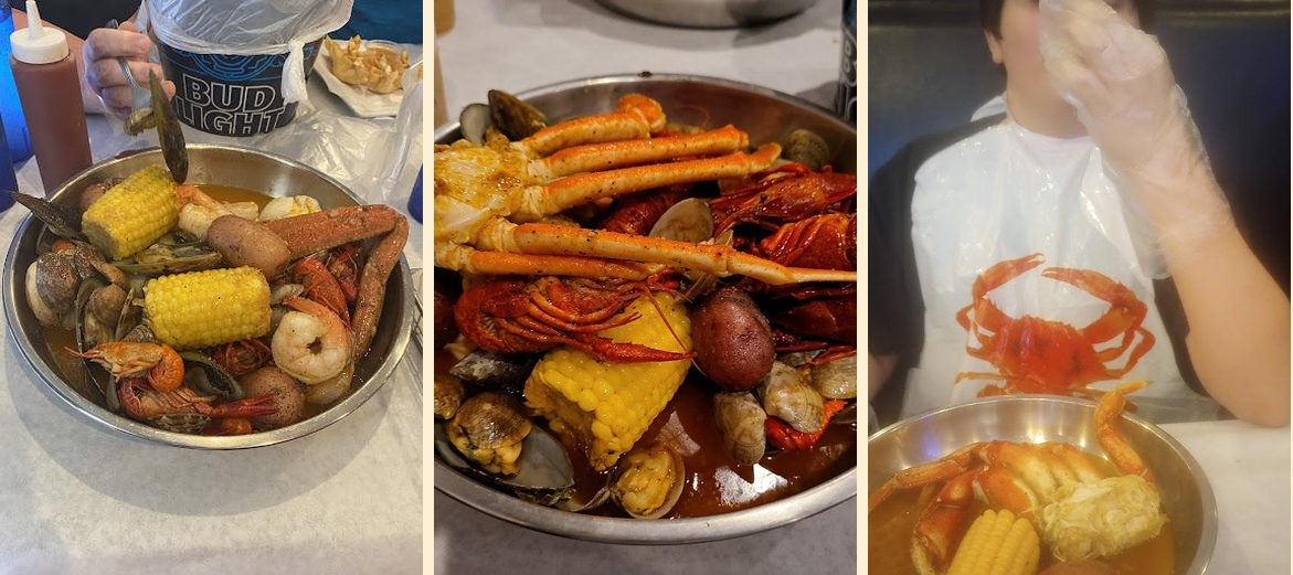 The menu features an impressive array of options. Guests can enjoy rich seafood boils, flavorful pho, and a variety of appetizers like crab rangoons and fried calamari. The ambiance is casual yet lively, perfect for families, groups, or solo dining. With quick service and a welcoming atmosphere, it's a favorite spot for lunch or dinner.